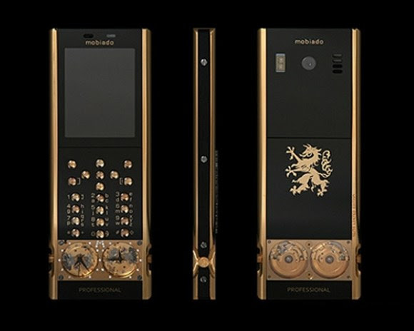 Mobiado Professional 105gmt Mobile Phone誇張的使用274克拉的藍寶石水晶,並採鍍金材質搭配鑽石點綴,全世界限量50支,最普通的基本款就超過美金三千元 (約台幣八萬六),如果再加上其他鑽石裝飾配備,價格不斐!